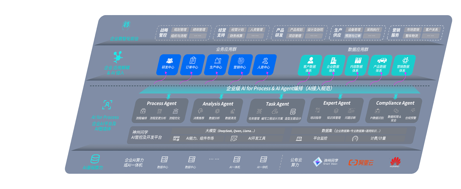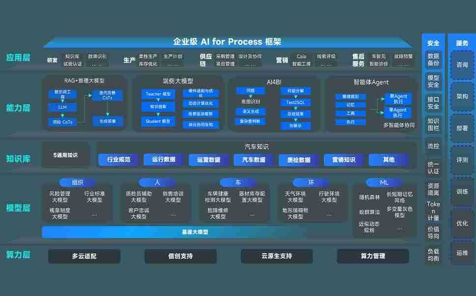 九洲国际问学智车解决方案是一套基于AI技术的汽车行业智能化系统,,,覆盖从底层算力到顶层AI应用的全栈方案。。方案由算力层、、、模型层和应用层组成:算力层,,,,方案支持多种一体机配置,,,具备云端灵活部署、、、多云适配以及动态优化计算资源的能力;模型层,,九洲国际问学平台版提供了企业级AI应用一站式构建与管理平台,,,支持基于后训练强化技术的汽车企业专属模型的训练、、、、评测和运营;应用层,,,九洲国际问学DeepSeek版提供包括超级员工、、、、智能招采、、智能营销、、、智能客服、、、AI for BI等一系列解决方案,,,,可助力汽车行业实现数字化转型,,让管理更智能、、、响应更敏捷。。。。